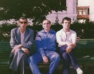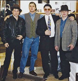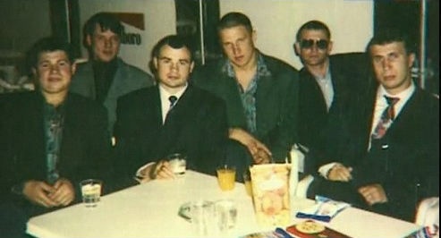 На фото: члены ОПГ Виктор Комахин (второй слева; застрелен в 1995 году) и Игорь Чернаков (третий слева; был убит в 1994 году на следующий день после убийства лидера ОПГ Сильвестра).