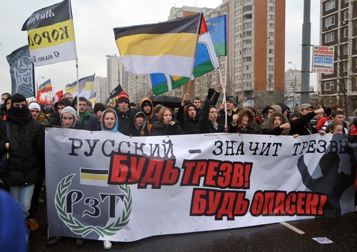 В московском районе Люблино прошла ежегодная акция националистов «Русский марш», приуроченная ко Дню народного единства.