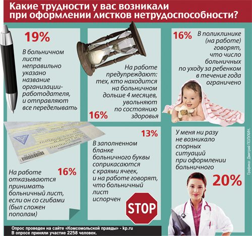 Этот подвох — неточности в названии работодателя — занял первое место в рейтинге самых частых спорных ситуаций, с которыми сталкиваются работники при оформлении больничных. «Меня заставили переделывать больничный лист, потому что не было указано полное название фирмы — забыла упомянуть, что это общество с ограниченной ответственностью», — рассказывает типичную историю Ирина.