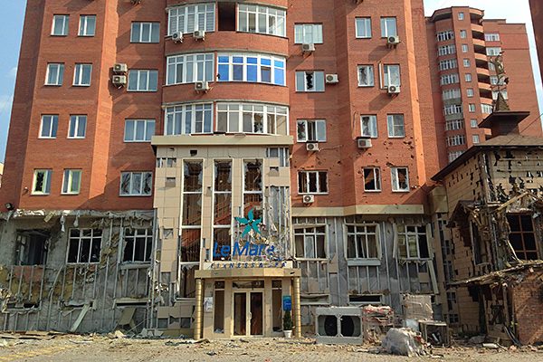 Жилой дом после попадания снаряда в микрорайоне 15-й участок, Донецк.