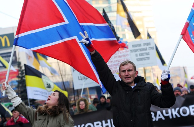 Участники «Русского марша за Новороссию» в Москве, 4 ноября 2014 года.
