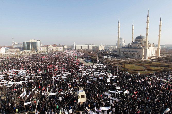 В Грозном завершился марш против карикатур на пророка Мухаммеда. С раннего утра тысячи верующих со всего Северного Кавказа начали прибывать в Грозный для участия в марше. МВД Чечни сообщило, что в акции приняли участие более миллиона человек.