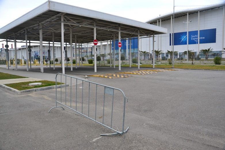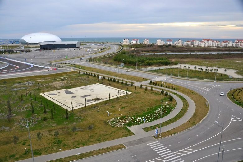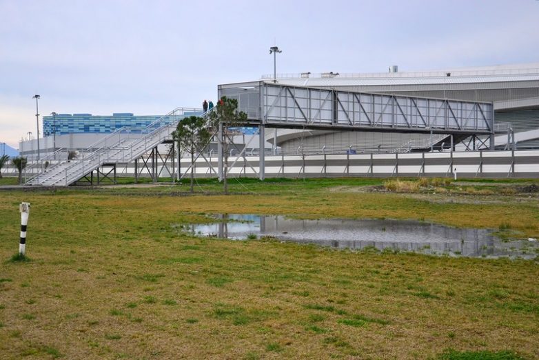 12. После гонок «Формула-1», которые обошлись жителям края в 10 миллиардов рублей (с учетом выручки от продажи билетов), Олимпийский парк прекратился в гетто. Теперь здесь кругом одни лишь заборы, а для пешеходов сделали такие вот надземные переходы.