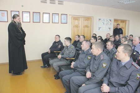 Просветительская работа среди сотрудников органов внутренних дел формально действительно приурочена к 70-летию Победы. Полицейские ходят на лекции по духовному воспитанию, патриотизму, изучают основы семейных ценностей. В роли педагогов выступают различные ученые и священнослужители. Например, как сообщает сайт МВД РФ, не так давно лекции прошли в Пензенском и Мурманском управлениях ведомства. Что такое добро и сострадание, на днях было разъяснено и ставропольским стражам порядка. Скажем, в отделе МВД России по городу Железноводску иерей Алексей провел занятие на тему «Духовность. Нравственность. Закон», рассказав о значении поста для православных, о необходимости обретения и сохранения душевного спокойствия, приверженности толерантности. «Такие лекции призваны повысить уровень духовного и нравственного воспитания сотрудников, а также найти еще больше точек соприкосновения между представителями различных национальностей и конфессий. Все это является очень важным и актуальным, особенно в нашем многонациональном регионе», – так подытожил эту встречу начальник горотдела полиции Алексей Данилов.