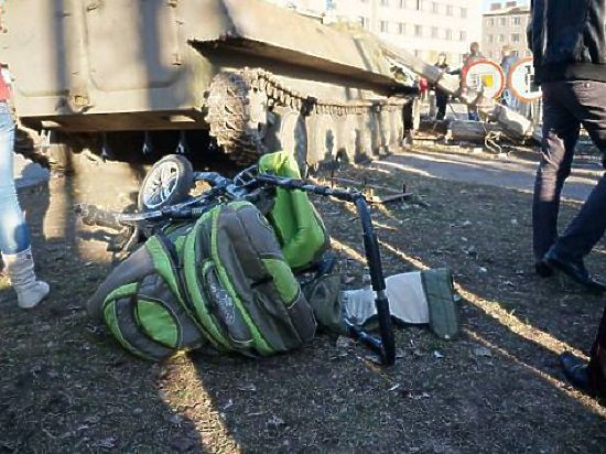 БМД с украинскими силовиками выскочила на тротуар и задавила восьмилетнюю девочку. Жители попытались расправиться с водителем прямо на месте, но сотрудники милиции спасли его. Волнения в городе не утихают до сих пор, силовики задержали нескольких протестующих.