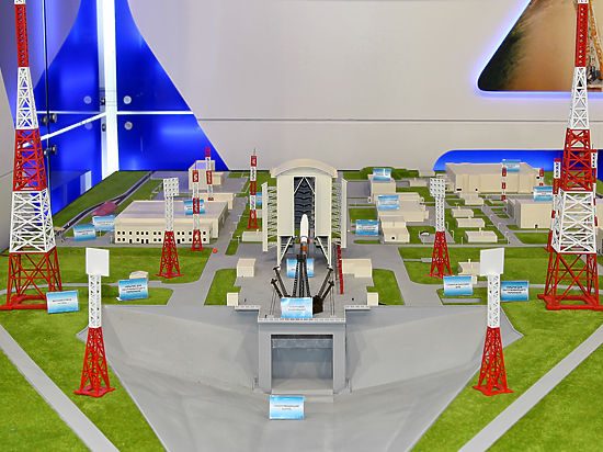 Макет стартового комплекса для ракеты-носителя «Союз-2» на космодроме Восточный.