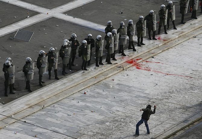 Столкновения в Афинах, 12 декабря 2008. Бросаться камнями в полицейских — это эффективно, не неактуально.