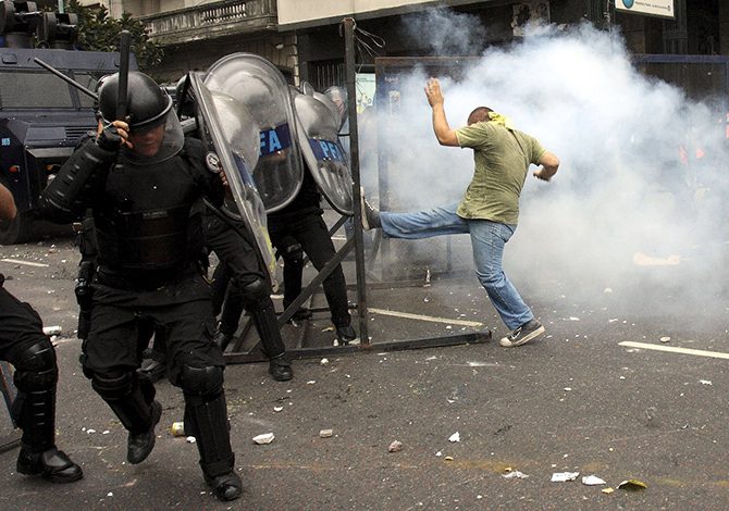 Получите. Студенты в Буэнос-Айресе разбушевались во время выборов нового ректора университета, 14 декабря 2009.