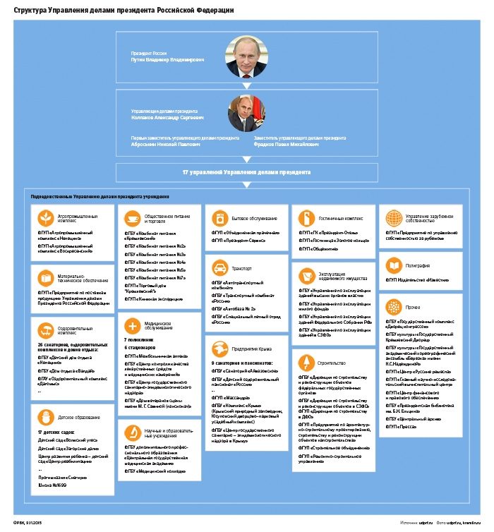 Управделами президента, созданное в начале 1990-х годов для обеспечения нужд высокопоставленных чиновников, за свою более чем 20-летнюю историю обросло гигантскими территориями и огромным количеством собственности. Даже по скромной оценке самого ведомства, его земля и недвижимость стоят свыше $6 млрд.