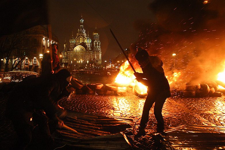 обматывался колючей проволокой у здания Законодательного собрания Санкт-Петербурга, чтобы показать жизнь в стране с «репрессивной законодательной системой»,