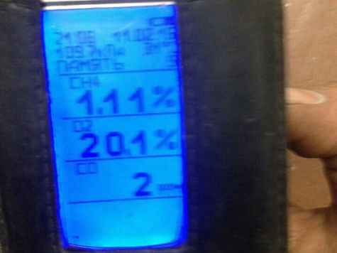 Снимки датчиков метана, сделанные одним из шахтеров 11 февраля в 21.06 и 21.22. На них видно, что концентрация газа за 15 минут увеличивается вдвое — до 2,55 процента, что на четверть превышает норму.