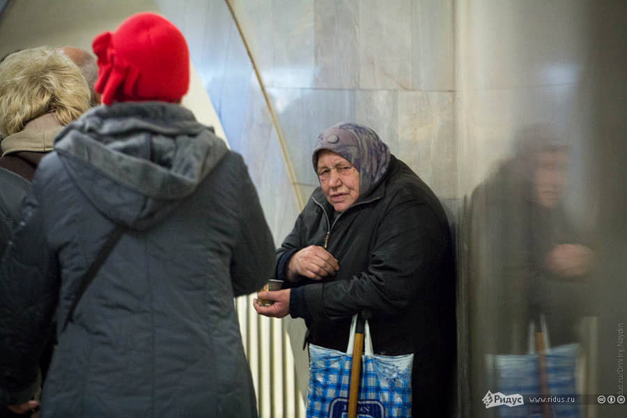 Отправлюсь на станцию «Киевская» Кольцевой линии, ведь именно там больше всего переходов. Найти нужную нам попрошайку не составило особого труда. Я подхожу к ней, представляюсь корреспондентом. Сгорбившаяся, в темной и рваной одежде, она едва поднимает голову. Услышав меня, три раза крестится и отворачивается. После пары подходов мне уже показалось, что миссия провалена, но вспомнив опыт с «воякой», я предложил денег, на что бабушка незамедлительно среагировала. Я попытался начать диалог.