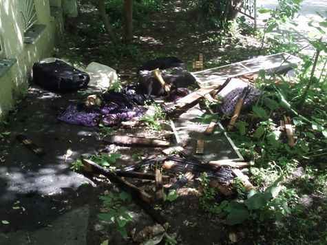 Вещи убитых мужчин пришлось выбросить на улицу.