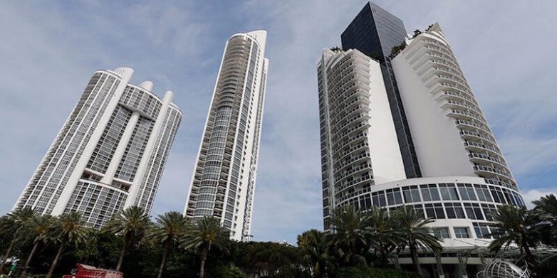 Слева направо: Trump Royale, Trump Palace и Trump International Beach Resort в Санни-Айлс-Бич