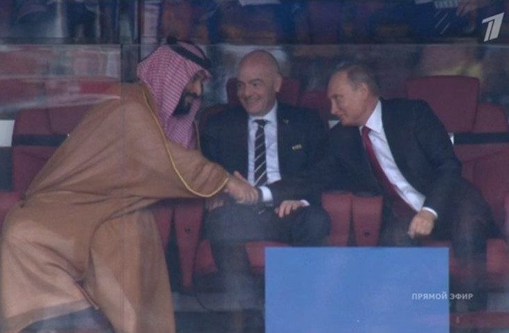 С трибуны за матчем наблюдал президент России Владимир Путин. Он также принял участие в торжественной церемонии открытия чемпионата. Рядом с Путиным сидел наследный принц Саудовской Аравии Мухамменд бен Салман.