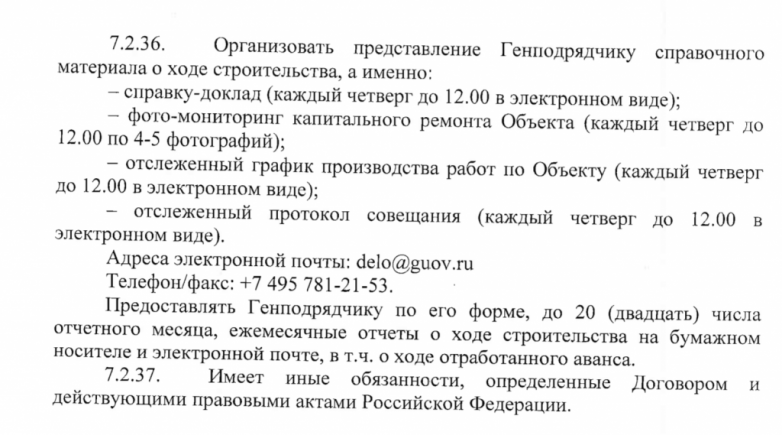 Условие о съемке хода строительства