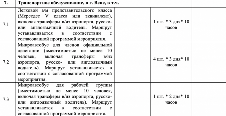 В этой связи интересен тайминг мероприятий. Собственно презентация экономического потенциала займет два часа. Также в техзадании упоминаются 10 деловых встреч примерно по 20 минут каждая — еще 3,5 часа. При этом переводчики и транспорт иркутским чиновникам нужны в течение восьми и десяти часов соответственно. Все три дня этой сугубо деловой поездки.