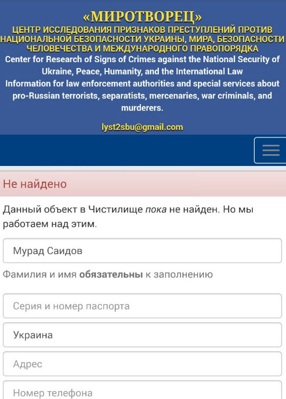 На сайте «Миротворец» не удалось найти данные Мурада Саидова