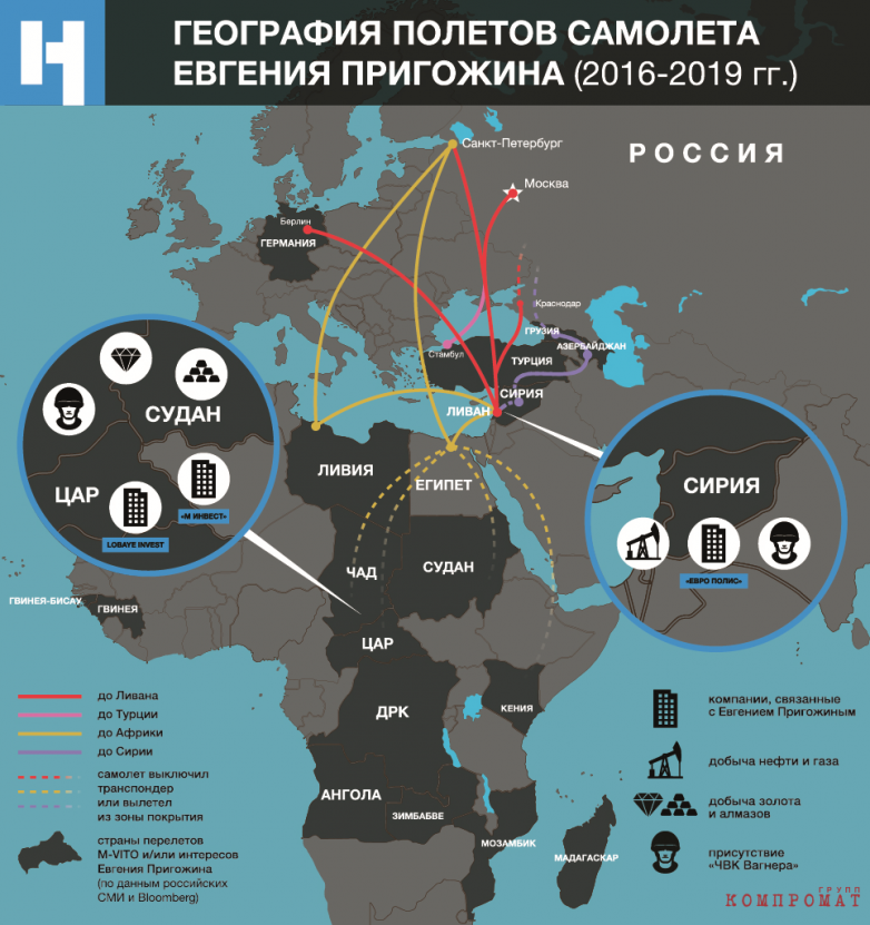 Зачем самолет «кремлевского повара» почти каждый месяц летает в зоны вооруженных конфликтов?