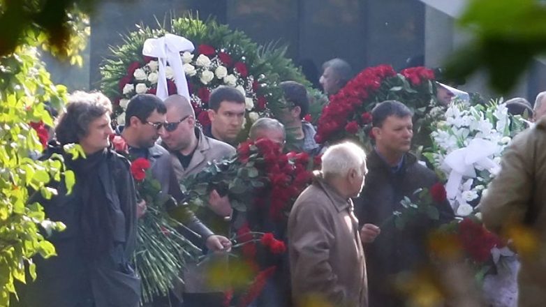 Во время похорон Вячеслава Иванькова (Япончика) на Ваганьковском кладбищеВ те же дни на Троекуровском кладбище хоронили дважды Героя Советского Союза космонавта Павла Поповича. Сравнивать процессии просто стыдно.
