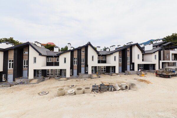 В Геленджике есть элитный район — типа Рублевки. Недавно там появился вот этот (на фото) комплекс апартаментов и таунхаусов. Совсем близко к морю и в окружении сосен.