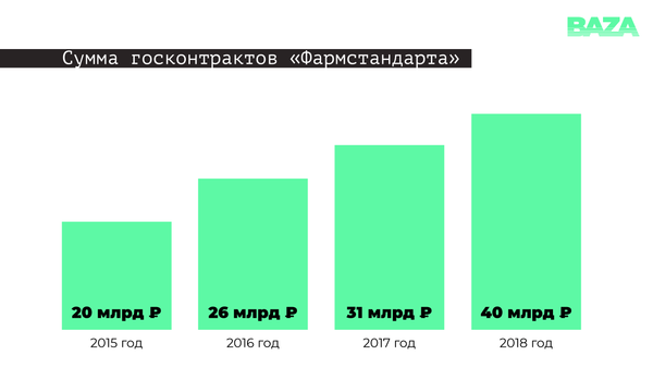 Всего компания Харитонина “Фармстандарт” получила в 2018 году госконтрактов на 40 млрд рублей.