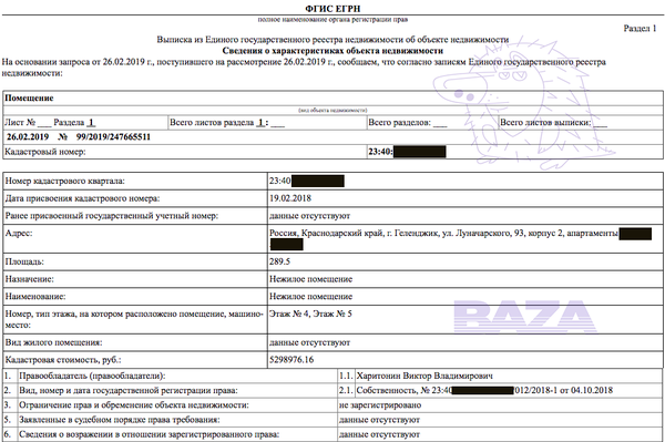 Выписка из Единого госреестра недвижимости