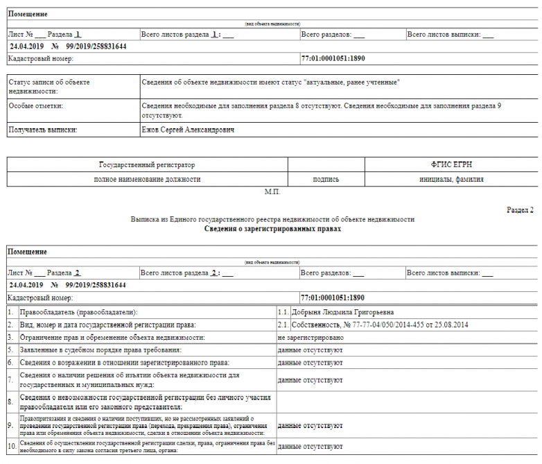 Собственником апартаментов Людмила Добрыня стала 25 августа 2014 года