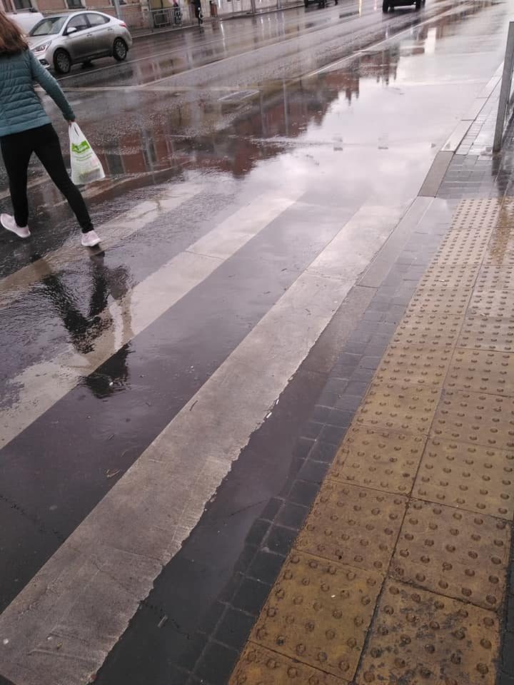 По новеньким тротуарам после дождя лучше не ходить — водой их заливает по щиколотку. Видимо, ливневку просто не успели уложить из-за спешки. Талый снег и дождевая вода размыли уложенную к соревнованиям брусчатку — она пошла волнами, повсюду появились провалы.