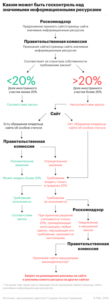 Проще говоря, любой информационный ресурс теперь сможет ощутить собственную «значимость». Особенно если его финансируют иностранные компании. Критериев значимости в законопроекте, к слову, нет. Их будет придумывать Роскомнадзор, причем на ходу. «Значимый» ресурс обяжут снизить долю иностранного капитала в бизнесе до 20%. Непокорным запретят продавать рекламу на своей информационной площадке.