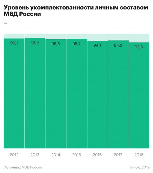 В прошлом году укомплектованность органов внутренних дел не только не достигла планового значения в 95%, но и сократилась на 1,6 п.п. по сравнению с 2017 годом.