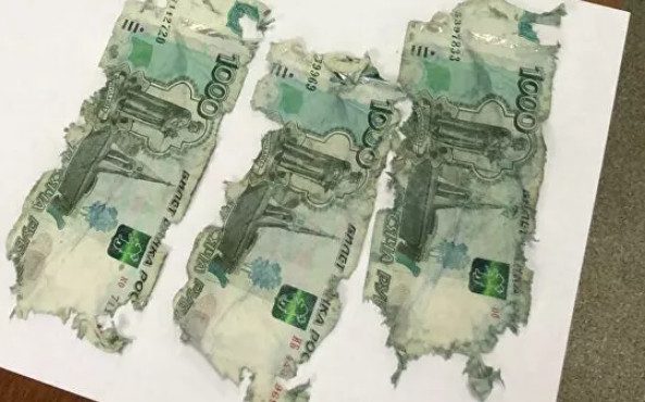 По словам источника, майор успел почти полностью съесть пятитысячную и однотысячную купюры. Еще четыре купюры по одной тысяче рублей остались целы.