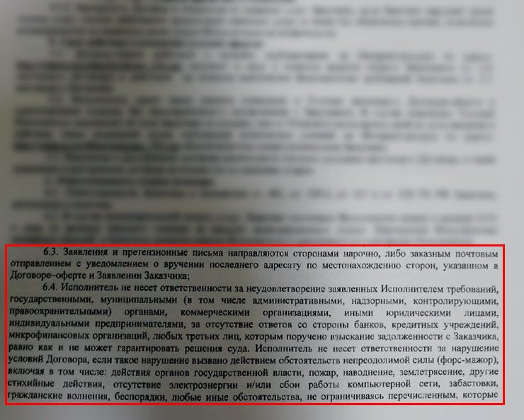 Никаких гарантий эта фирма не даёт. В договорах «Витакона» указано, что ответственность за решения банков и судов компания на себя не берёт. Но за свои услуги «Витакон» берёт деньги. От 5500 до 14 900 рублей в месяц, в зависимости от суммы долгов. Помочь компания обещает за 6–12 месяцев. После заключения договора заёмщик оформляет доверенность на организацию, чтобы она могла представлять его интересы в суде.