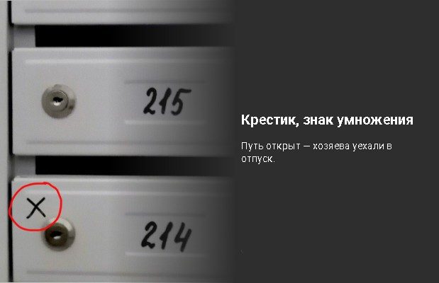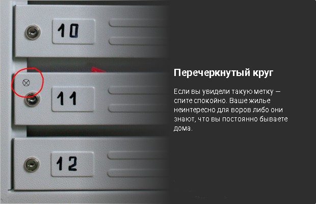 Метка может быть нацарапана на стене, написана маркером, выжжена спичками, а также выглядеть в виде обычного торгового стикера, наклеенного на почтовый ящик. Рассмотрим, какие метки встречаются чаще всего, и что они значат.