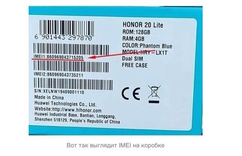 IMEI-код указывается на коробке телефона, ещё его можно найти внутри устройства, если снять аккумулятор, но для современных смартфонов этот вариант не подходит, поскольку корпус самостоятельно разобрать нельзя, батарея зафиксирована.