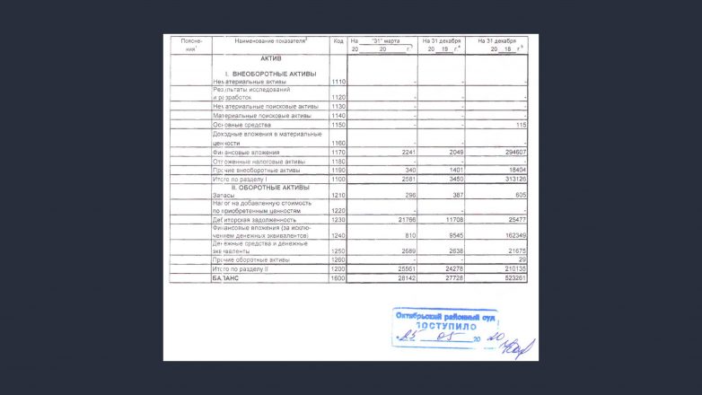 Сейчас Рюмины не предоставляют информацию о своём балансе ни пайщикам, ни общественникам. Поэтому сложно сказать, сколько на самом деле осталось денег на их счету. В мае 2020 года КПК представил в суд промежуточный ликвидационный баланс — скрин представлен ниже. Также у вкладчиков нет отчётных документов о тех, кто брал кредиты в «Надёжном будущем».