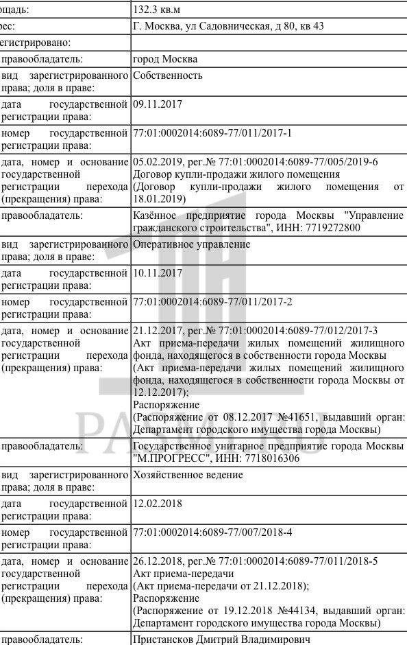 А двумя днями ранее — 19 декабря — Департамент городского имущества Москвы выделил Пристанскову квартиру площадью 132,3 кв. метра на Садовнической набережной.