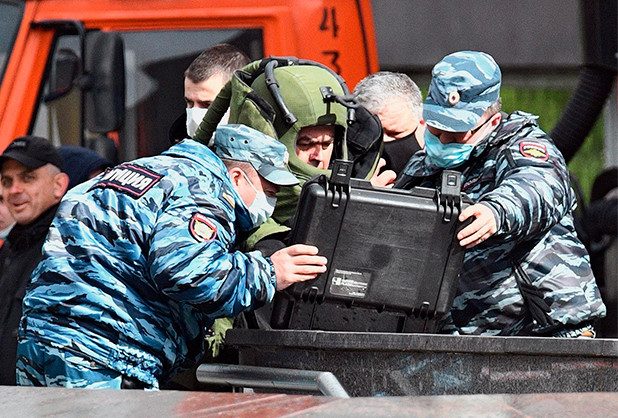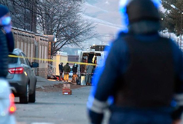 Место взрыва смертника у здания ФСБ в Карачаево-Черкесии, 11 декабря 2020 года