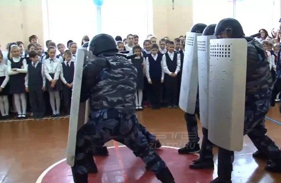 15 февраля в Нижневартовске полиция провела «Урок мужества», на котором школьникам показали, как разгоняют митинги.