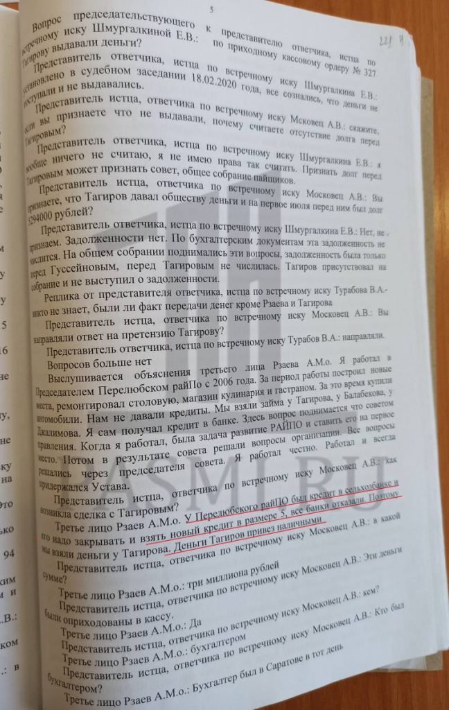 “Таким образом, куда именно ушли три миллиона, поступившие в РайПО от Тагирова, неизвестно. Не исключено, что эти деньги под видом неких фиктивных сделок могли быть попросту возвращены ему назад”, — предположил действующий глава перелюбского потребительского общества.