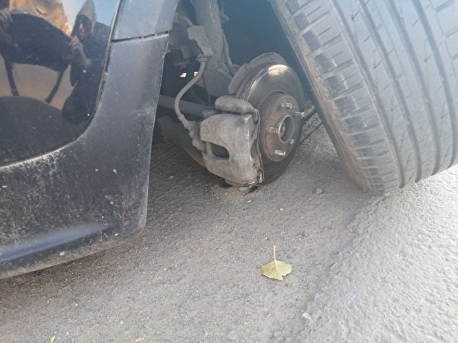 Отпавшие колеса на автомобиле Дмитрия Досина