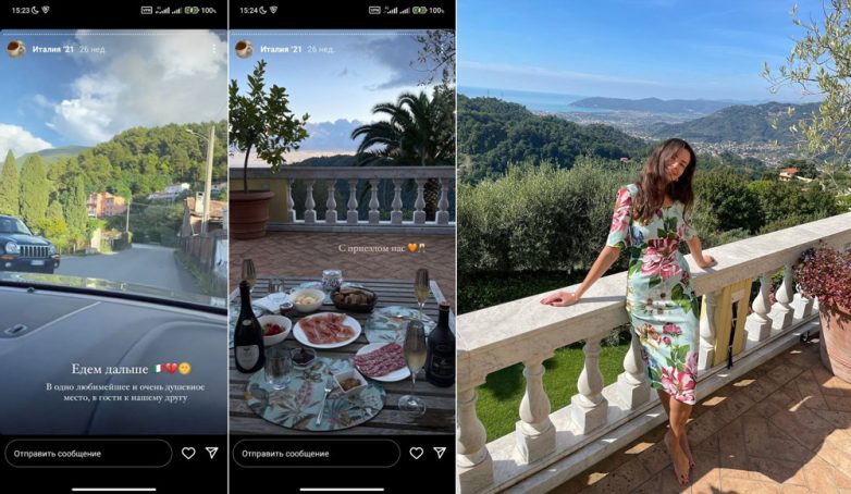 24 сентября Панкратова запостила очень много историй и фотографий с виллы друга. Похваставшись перед подписчиками платьем Dolce & Gabbana, она позировала там на романской террасе, украшенной огромными горшками с экзотическими растениями. Снимала всё вокруг: шатры, лежаки, застолье, коньяк, вино и шампанское. За мраморной балюстрадой ярусом ниже ухоженный сад и бассейн. Дальше объектив её камеры скользит вниз по лесистым склонам, винодельням, красным крышам 60-тысячного городка Каррара и падает на синеву моря.