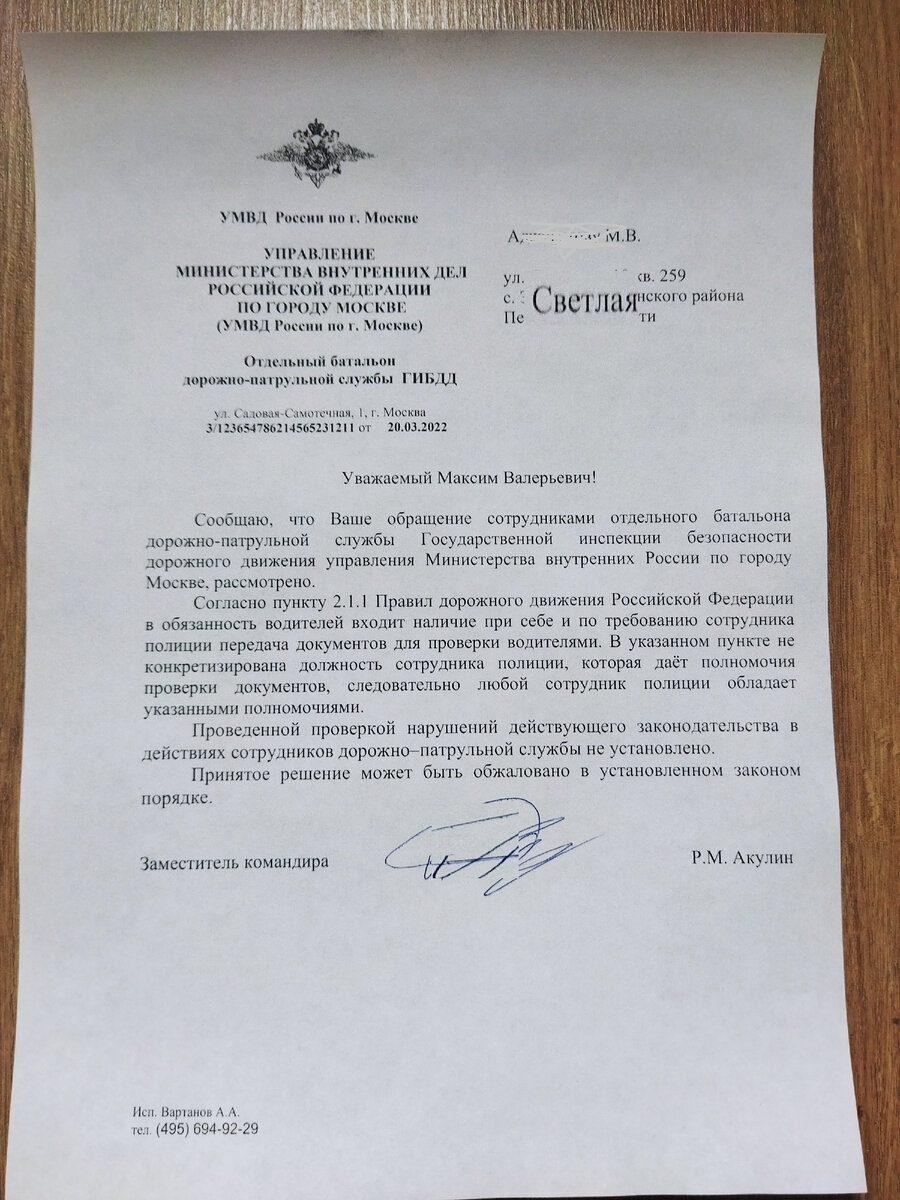 От автора: " Фотокопия официального ответа Госавтоинспекции на его вопрос к сотрудникам МВД «Обязан ли водитель предъявлять документы сотруднику полиции не являющемуся инспектором ДПС?»."