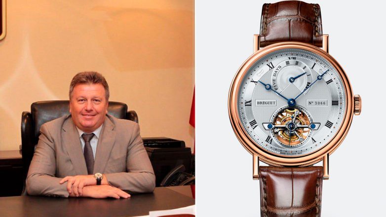 Перед этим самарские журналисты рассмотрели наручные часы судьи — они оказались очень похожи на швейцарские Breguet Classique Grande Complication из 18-каратного розового золота с турбийоном, рыночная цена достигает 16 миллионов рублей.