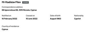 Согласно британской базе, Филёвы живут в Никосии. Ещё они могли осесть в Цюрихе, где у них есть родственники. А во Франции у Марии Филёвой есть полная тёзка. Судя по этой информации, она была прописана в добротном особняке стоимостью около двух миллионовевро на территории города Барр.