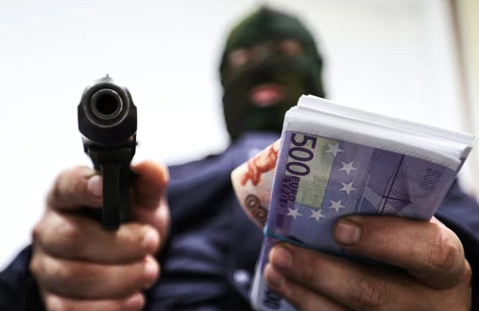 В Екатеринбурге грабитель приставил пистолет к голове кассира «Россельхозбанка» и заставил отдать 5 миллионов рублей разной валютой.