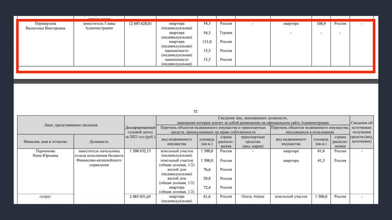 Согласно же публичной декларации о доходах за 2021 год, экс-чиновница Минобрнауки работала в должности заместителя главы администрации Одинцовского городского округа Московской области. В том году Переверзева заработала 12,7 млн рублей. Кроме этого, женщина указала в собственности две квартиры в России: двушку на Братиславской в столичном районе Марьино площадью 53,6 квадрата и вторую побольше (131 кв. м), расположенную, похоже, в Одинцове.