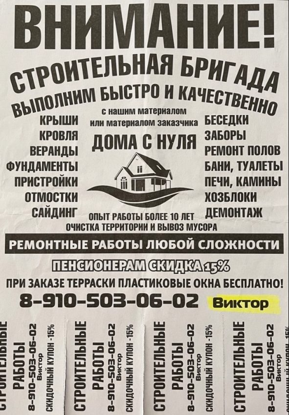 В тексте фигурировала обанкротившаяся фирма «Ока-Комфорт», директор которой «кидал» на деньги клиентов-пенсионеров, заказавших у него услуги со скидкой. Фирма Купченкова бралась за все виды строительных работ: установка заборов, ремонт крыши, отделка помещений.