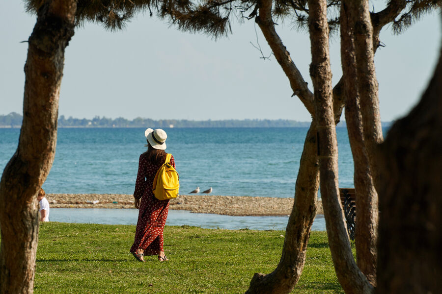 Девушка на набережной Сухума в Абхазии