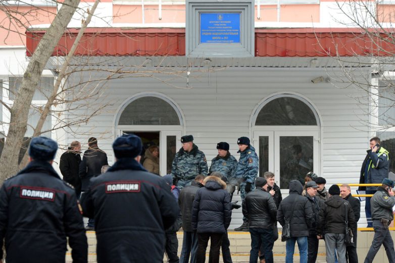 Сотрудники полиции возле московской школы №263, 3 февраля 2014 года